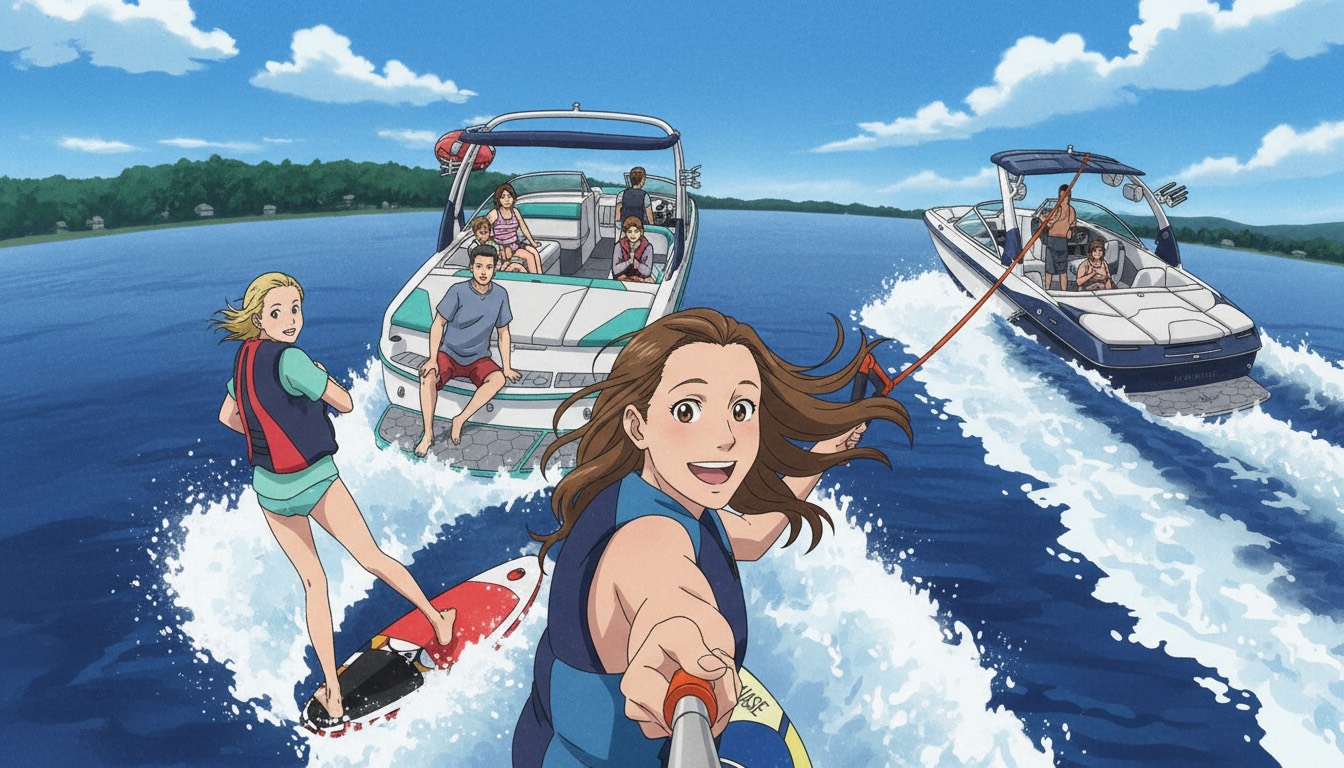 モータボートに引っ張られて水の上を滑走、最大5名まで同時に楽しめます。